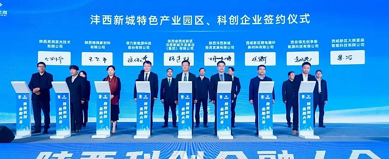 灃西新城特色產業園區與西咸新區大熊星座智能科技有限公司、西安領充創享新能源科技有限公司、西咸新區鋰電循環新材料有限公司、保力新能源科技股份有限公司、陜西精微新材料有限公司、陜西奧潤激光技術有限公司6家企業簽訂合作協議,將大力發掘以中國西部科技創新港—西安交通大學為主的優質高校科技成果項目推動優質科技成果加速轉化。